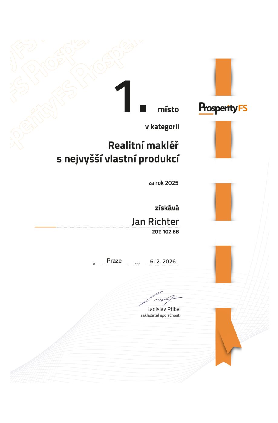 Ráda bych poděkovala Janu Richterovy za skvělou a profesionální práci . Je to opravdu člověk na svém místě. Jeho odborné znalosti,ochota , vstřícnost a péče o klienta mi velice pomohl v mé tíživé a pro mne už neúnosné situaci při řešení prodeje mého spolu vlastnického podílu na nemovitosti.